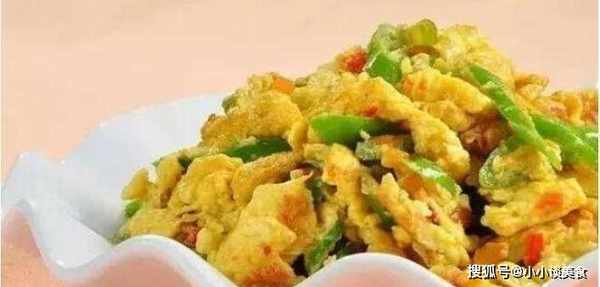 1、青椒用清水洗凈,去籽,切成細條。將雞蛋打入碗中,用打蛋器攪拌。
