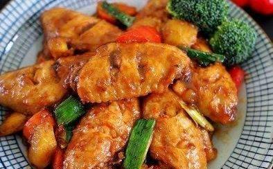 2、鍋燒熱,加入適量的食用油,下入肉丁,炒至變色,加入蒜末、藥明、甜面、醬油,炒至熟。醬汁的香氣釋放出來。