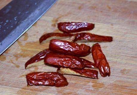 第四步,將紅棗用溫水泡一會,搓幹凈,去核,分成兩份。面團醒好後,撕掉保鮮膜,將紅棗放入和好的面團中;