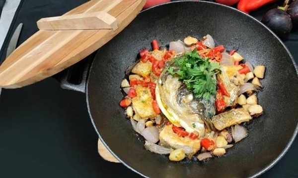 胖頭魚500克、洋蔥100克、沙薑100克、蒜子100克、泰椒100克、香菜、花生醬200克、百香果50克、檸檬50克、美極鮮10毫升、辣鮮露10毫升、花雕酒50毫升