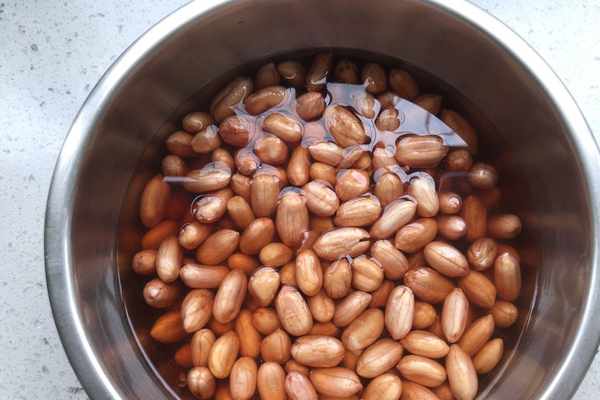 步驟四:花生米清洗幹凈,提前用水浸泡漲發,不用煮熟,也不用去皮。