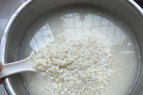 步驟一:準備好需要的食材,開始制作。首先準備糯米,洗凈後浸泡4小時左右。圓粒長粒都可以,長粒糯米黏性高,但口感偏硬一些。圓粒糯米口感偏軟糯,但黏性稍遜於長粒糯米。