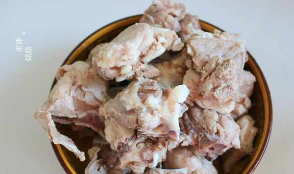 2,將豬骨先用清水沖洗兩遍,然後涼水下鍋,大火煮開後再煮兩分鐘撈出,再用清水把表面的浮沫洗凈。