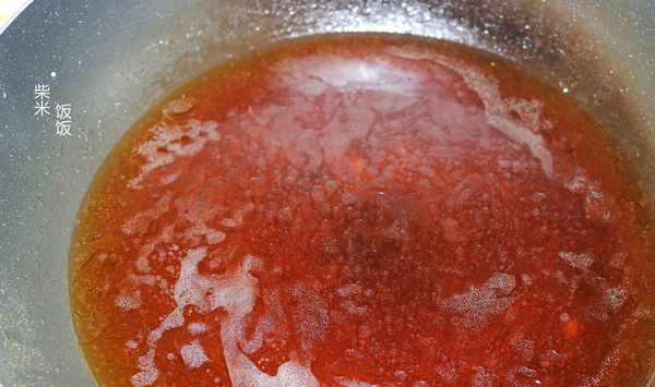 6,迅速倒入一碗熱水,攪拌燒開,顏色紅亮的糖色就炒好瞭。