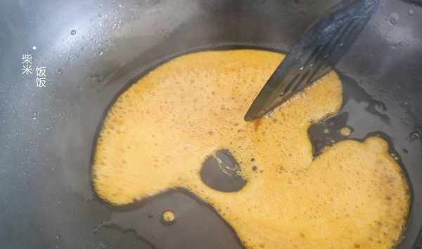 5,炒至鍋裡冰糖變成紅褐色的液體,再出現這種密集的小氣泡就可以瞭。