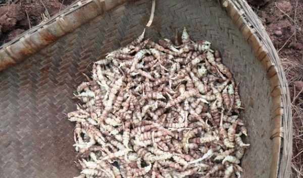 這種植物地下的根塊卻非常奇特,長得很像冬蟲夏草,白白胖胖的,並且還有螺紋。乍一看還很像小朋友愛養的蠶。因為酷似螺絲,有些地方也叫它“螺絲菜”。