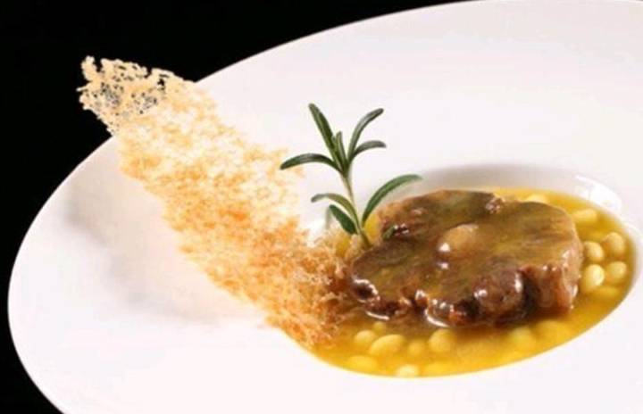 牛尾巴150克、黃豆15克、面粉、芝士網片、香草精、濃湯250克、鹽、雞汁