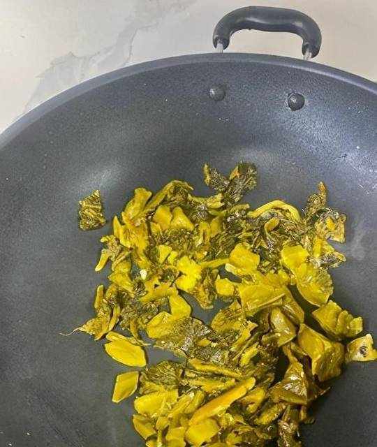 起鍋燒油先燒酸菜炒完備用