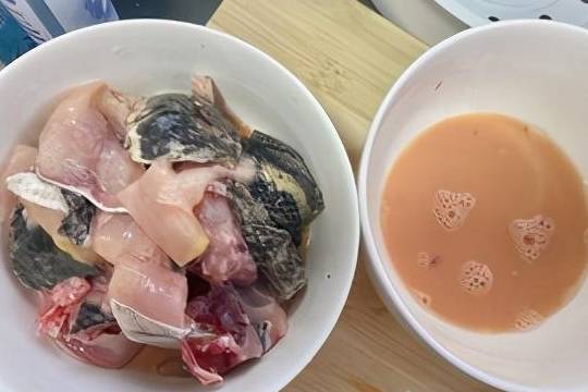 將魚片從蛋液中撈出備用
