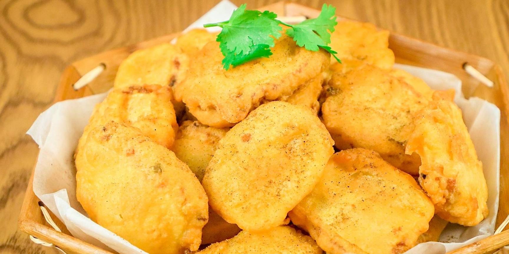 好瞭,一道金黃焦酥的椒鹽土豆夾就做好瞭。