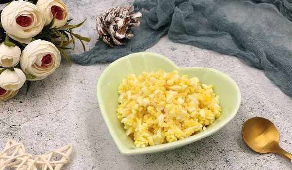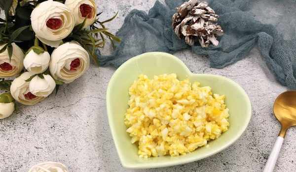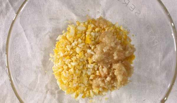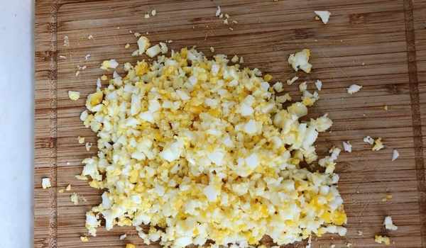 7、將煮好的雞蛋切碎,想要口感好一點的話最好是切細膩一點。