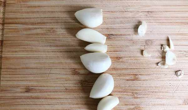 4、大蒜去皮備用。