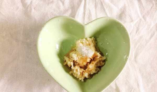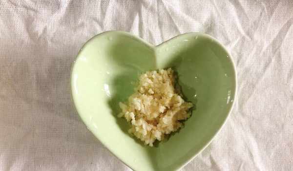 6、蒜泥中加入少量的鹽和適量的芝麻油,然後攪拌均勻備用。