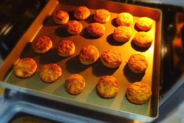 6、做好小圓餅,放入預熱好的烤箱中層,200度,烘烤15分鐘左右,註意觀色,看到小餅幹表面發亮變色的樣子就可以取出來瞭。