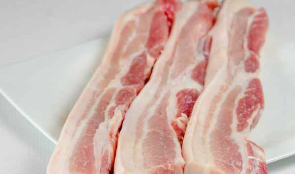 1、準備一塊帶皮的五花肉,我們把鍋燒熱之後,把帶皮的一面放到鍋內燒一燒,這樣可以去除其腥味。