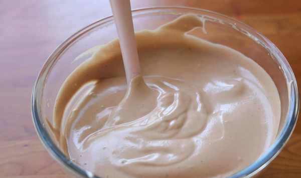 2、玉米油先倒在碗中,再把低筋面粉和可可粉混合篩進去,拌均勻,再把牛奶和蛋黃加進去拌均勻,拌至順滑無顆粒的狀態即可;