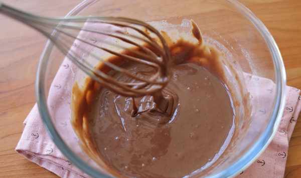 8、30克淡奶油和30克黑巧克力隔熱水融化,放涼備用;