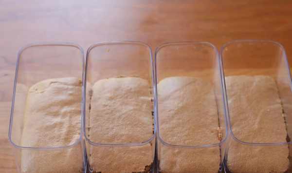 10、先放一層蛋糕胚在蛋糕盒子裡;