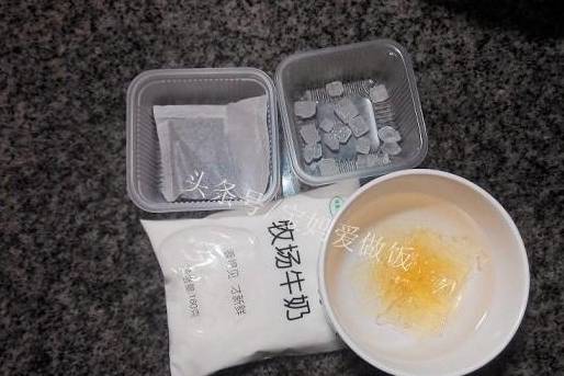 先來準備食材:紅茶包,純牛奶,冰糖,吉利丁片。