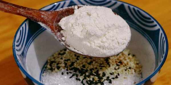 2、準備喜歡的餡料。這個餅叫做粘火燒,餡料有很多種,豆沙餡、奶黃餡、紅豆餡、白糖餡等。我今天準備的是白糖餡:2勺白糖、1勺熟芝麻、1勺面粉混合均勻,糖餡裡加面粉,這樣糖融化後糖液會很稠,吃的時候不容易燙嘴,也不會流的到處都是。