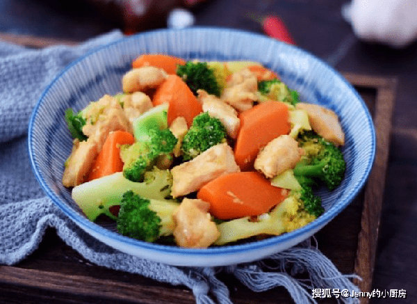西藍花分成小朵,清洗兩遍;胡蘿卜去皮洗凈,切成小塊,也可以換成紅菜椒,隨自己喜歡調整。