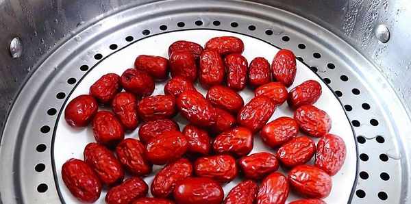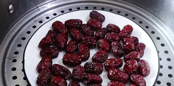 提前用清水清洗幹凈紅棗,放入盤中,上鍋蒸制。