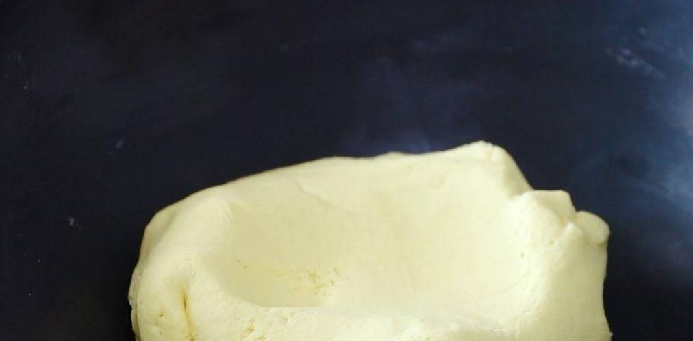 將黃米面倒入大碗中,加溫水攪拌成面絮,再揉成面團。(一斤面加六兩水!)
