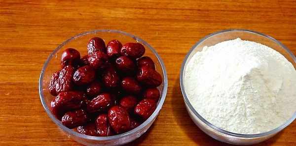 黃米面,紅棗,水。