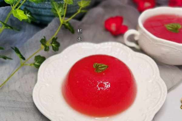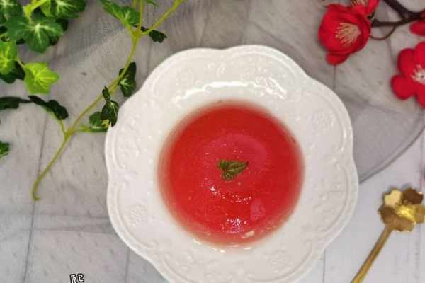 3、放入吉利丁時,西瓜汁的溫度不要太高,接近體溫最好,溫度太高以免影響吉利丁的凝結效果。