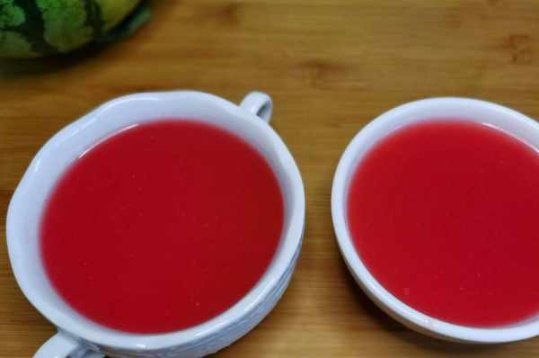 7、準備兩個空碗,將熬好的西瓜汁分裝進去,放一旁徹底涼瞭;等晾涼後,蓋上蓋子放冰箱冷藏2-3小時,待其全部凝固後就可以食用瞭。這款軟軟彈彈,類似果凍的【西瓜露】就做好瞭,入口全是西瓜的清甜與冰涼,您可以直接在碗中切成小塊食用,也可以倒扣在盤子內用勺子挖著吃,依自己的喜好決定吧,如果您喜歡不妨操作起來試試呀!