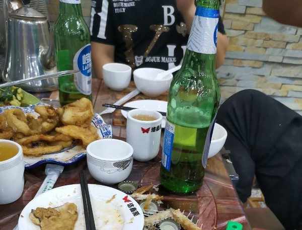 另外還送瞭兩個精美小涼菜,洋蔥、黃瓜等下酒菜。啤酒有青島和嶗山,還有精釀紮啤價格不菲。