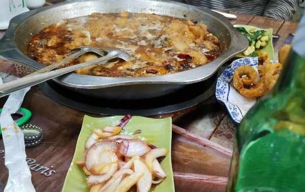 吃完喝完去結賬,總共不到兩百元,啤酒喝瞭八瓶。假如在飯店吃的話,四個人要六個菜至少得兩百多塊,看來還是吃魚鍋實惠,關鍵是這魚的味道鮮美,老板也會做生意,結賬時的零頭主動抹掉。這樣的商傢生意想不火爆都難瞭。