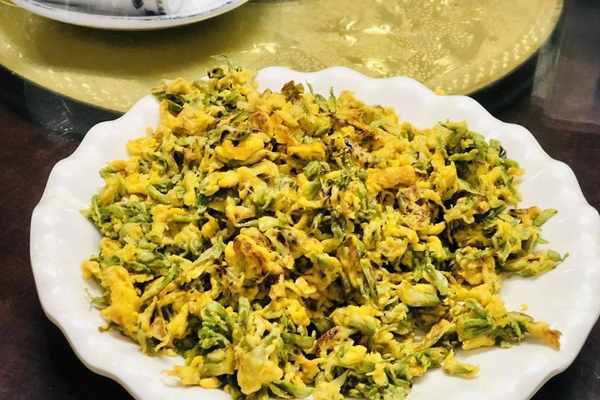 菜品三:槐花炒雞蛋槐花是春天特有的一種美味,但是在農傢樂,一年四季都可以吃到槐花,因為每年春天的時候,農傢樂都會收購很多的槐花,然後放到冰箱裡冷凍起來,等到吃的時候,拿出來自然解凍,搭配上農村的土雞蛋,炒成金燦燦的一大盤,一口下去,滿嘴留香,讓你越吃越想吃!