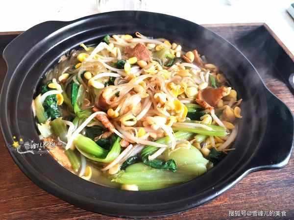 上海青燉豆芽的做法:材料:黃豆芽,油菜,五花肉,大蔥,薑絲,紅薯粉條,醬油少許,鹽適量,花生油少許。