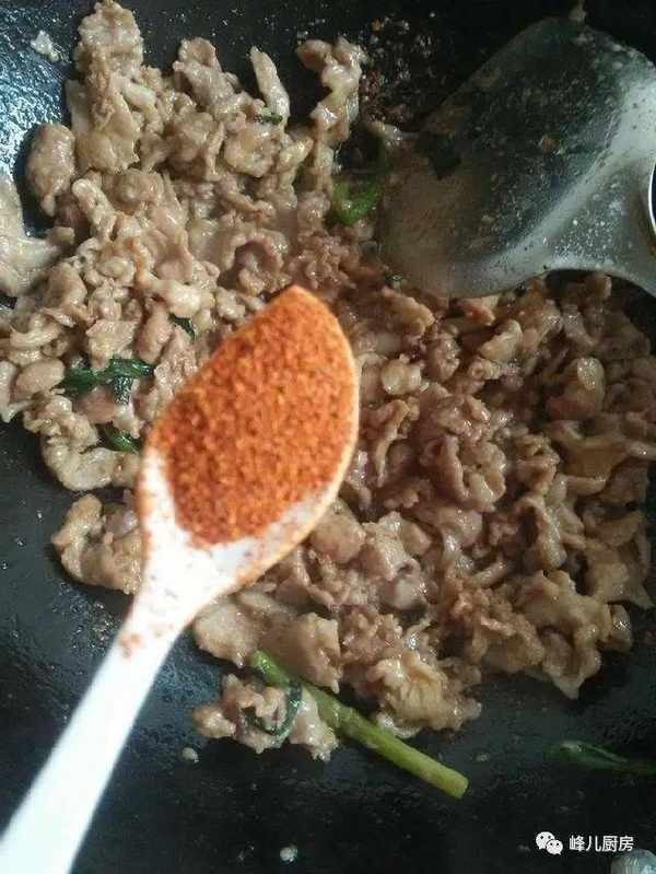 7、再加入適量辣椒粉提味,根據自己吃辣的程度添加。