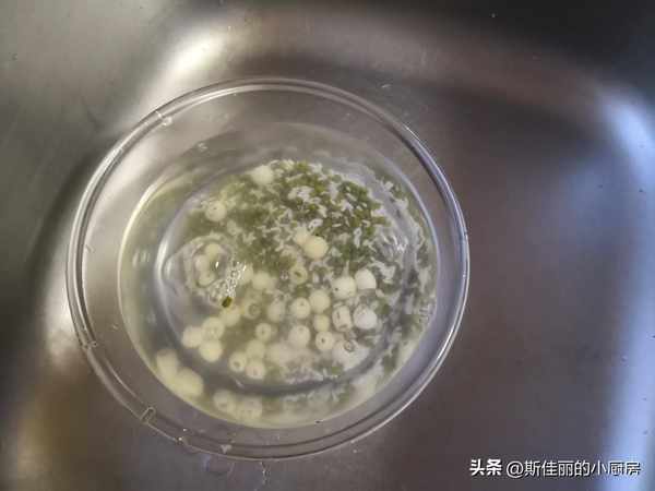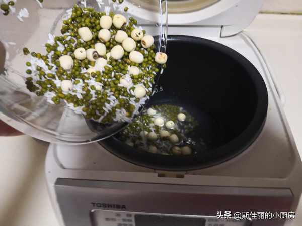 制作:1. 將綠豆、蓮子和糯米洗凈後放入冷水中浸泡二個小時以上(如果選用高壓鍋, 可以不用浸泡, 用普通鍋具和電飯煲,浸泡過的食材更容易快速軟爛)