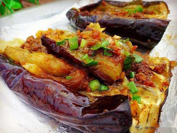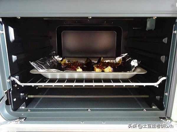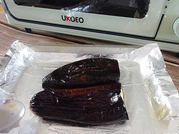 2、用烤箱上下火、溫度200度,烘烤20——30分鐘左右(依照茄子的大小粗細來定時間),用小勺什麼的壓一下烤好的茄子,能夠把茄子壓得軟趴趴的樣子就是烤好瞭。