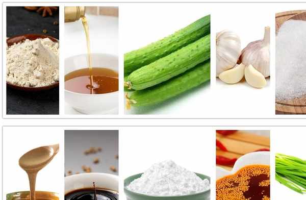 100克綠豆淀粉、黃瓜、大蒜、蔥、1湯匙芝麻醬、1湯匙醋、1湯匙醬油、半湯匙雞粉、半湯匙白糖、1湯匙辣椒油