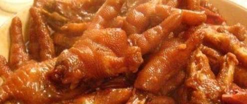 食材:鳳爪500克、生薑少許、料酒適量、冰糖適量、清水適量、老抽少許、香料適量;