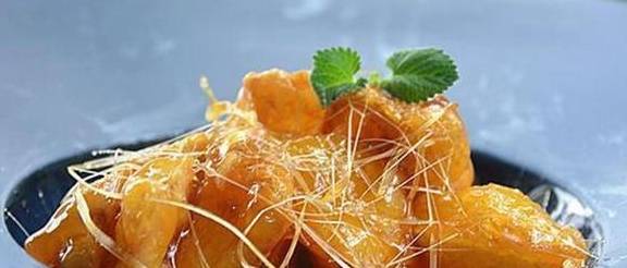 6.至氣泡突然變小,顏色發米黃,放炸好的土豆塊,快速顛炒,好瞭