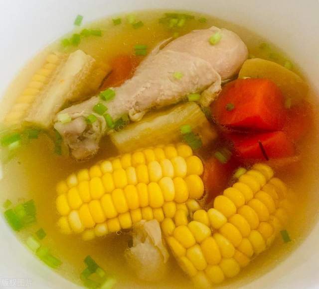 這道雞湯的特點是鮮香可口,而且營養價值非常高。食材包括土雞半隻、胡蘿卜、玉米、紅棗、生薑片、花椒和食鹽。做法也非常簡單,隻需要將食材處理好,加入清水煮開後轉小火燉上一段時間即可。這款雞湯外觀金黃,口感鮮美,非常適合冬天飲用。