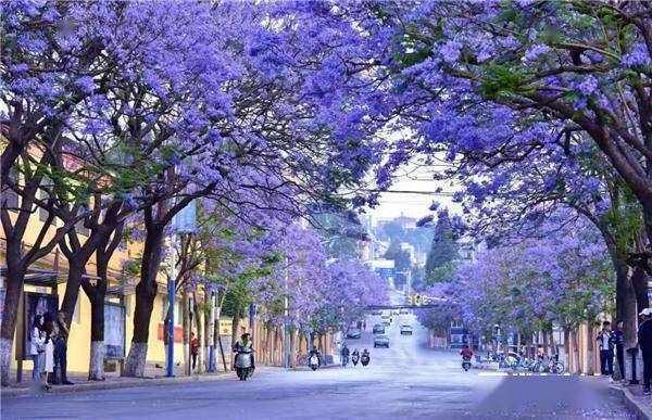 記者瞭解到,五華區人民路、南屏街、登華街、教場中路、濱江西路、大塘路,盤龍區盤龍江畔、聯盟路,西山區前衛西路(南二環—廣福路)、青年公寓巷、鐵皮巷、前福路(前旺路—河宏路)、金蘭路,官渡區官渡廣場、春霖園小遊園、滇池國際會展中心片區、福德路、寶海公園,呈貢區石龍路、致遠路、月華街,以及高新區高新大道高傢村段和滇池度假區金荷路,都是昆明主城區觀賞藍花楹的好去處。