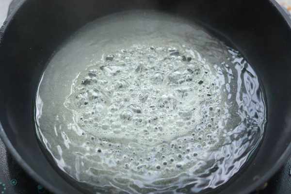 鍋裡放水和白砂糖,開中火把糖煮化