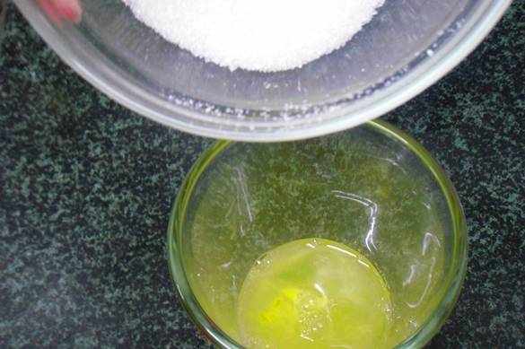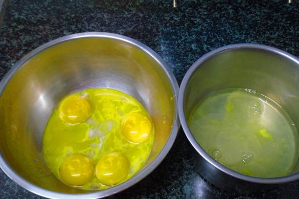 蛋清與蛋黃分開,分別放在兩個無水無油幹凈的容器內