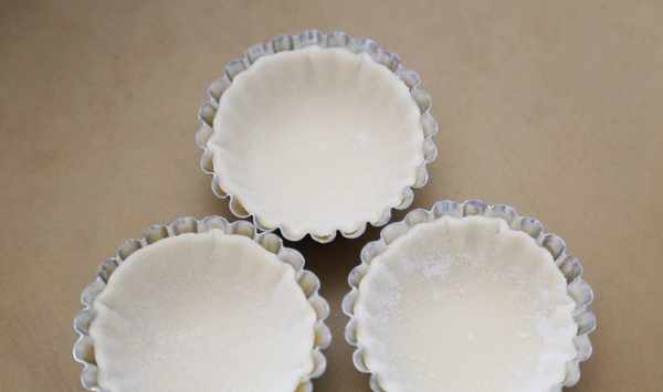 第三步,準備9張餃子皮放入烤蛋撻的模具中。這裡的餃子皮的用量比較少,所以我直接買的成品餃子皮,想吃的時候隨時拿出來做上一個,十分地方便。
