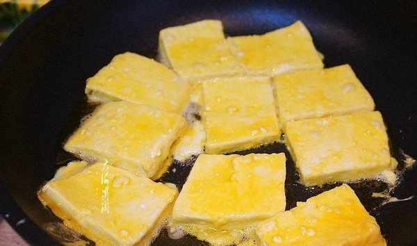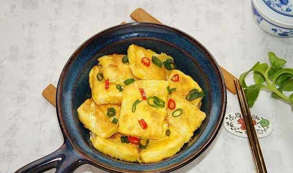 豆腐是日常生活中最常見的一種豆制品,它還是素食菜肴的主要原料,被稱為“植物肉”。豆腐基本保留瞭黃豆的所有營養成分,因此豆腐的營養價值極高,高蛋白,低熱量,低脂肪,而且豆腐在加工過程中由於加入瞭鹵水,從而讓豆腐中鈣、鎂的含量比大豆更高,據測定,每100g豆腐中約含有164毫克鈣,是補充身體鈣元素的佳品。尤其適合老人孩子及缺鈣人群食用。豆腐的做法很多,生熟皆可,老幼皆宜。還是百搭食材,酸甜苦辣咸,煎炒烹炸燜樣樣都可以做,所以民間有各種豆腐宴。大海今天的午餐就簡單瞭,香煎豆腐,外焦裡嫩,豆香十足,香而不膩,與雞蛋搭配,營養價值更高,老少皆宜,口味還可以根據個人喜好調整。