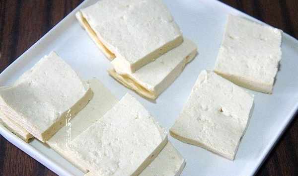 2、根據自己喜歡的大小,將豆腐切塊備用。
