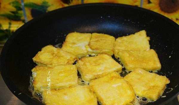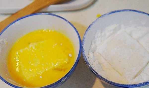 【香煎豆腐】所需食材:水豆腐半塊;雞蛋1個;面粉適量;油適量;鹽適量;胡椒粉適量。