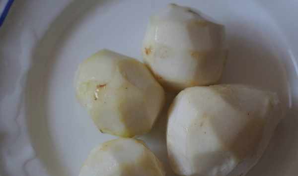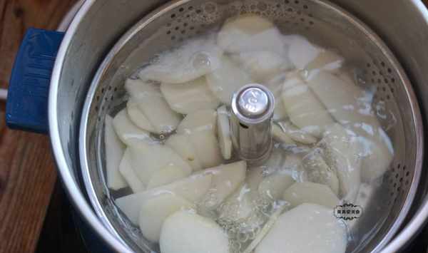 3、芋頭洗凈,去掉皮。然後切片備用。
