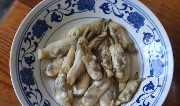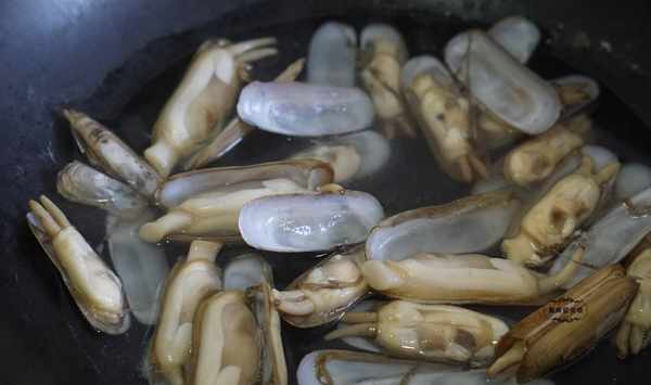【做法步驟】1、將蟶子吐好泥沙,放水裡加鹽煮熟。